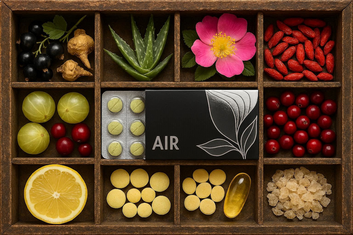 Support and nourish your immune and respiratory systems with AIR. Each pleasant-tasting lozenge offers a proprietary blend of ingredients gathered from five different continents that will help you feel better with every breath you take. |