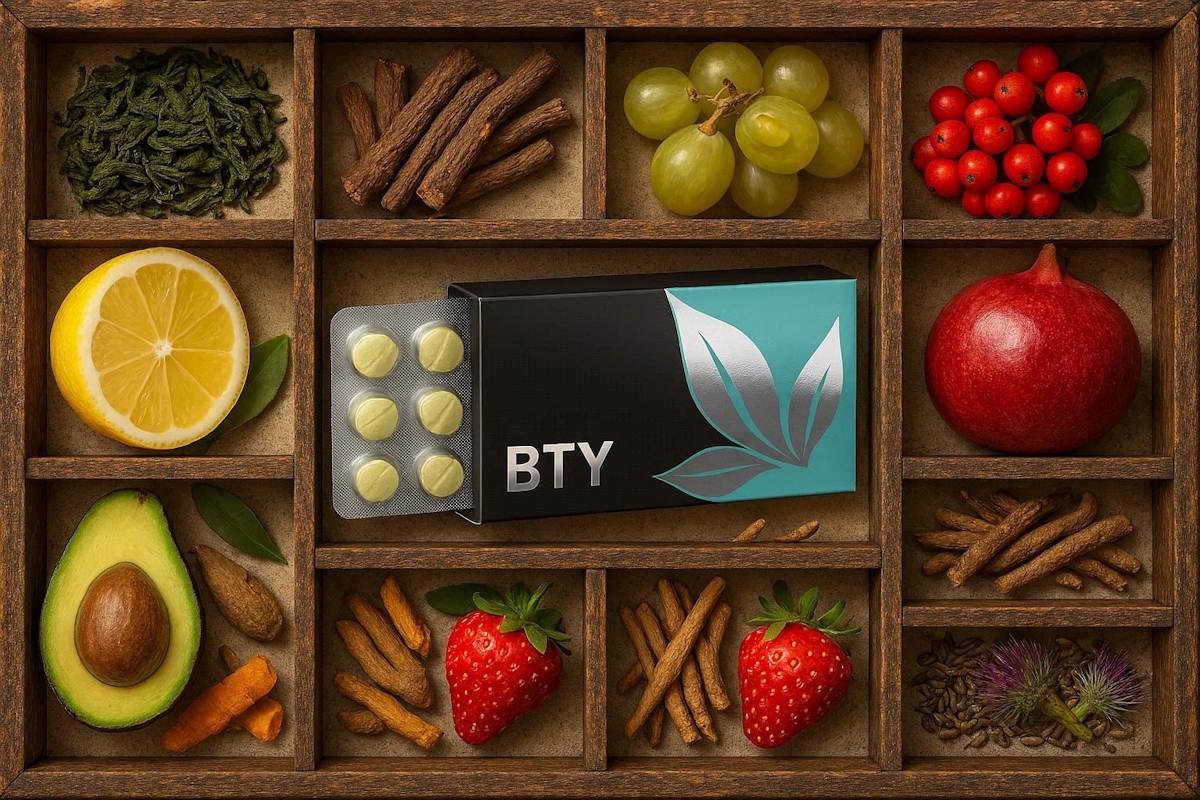 Bring out your natural beauty and radiance with BTY. Each strawberry-flavored drop provides you with all-natural, nourishing phytonutrients that support healthy skin and hair |
